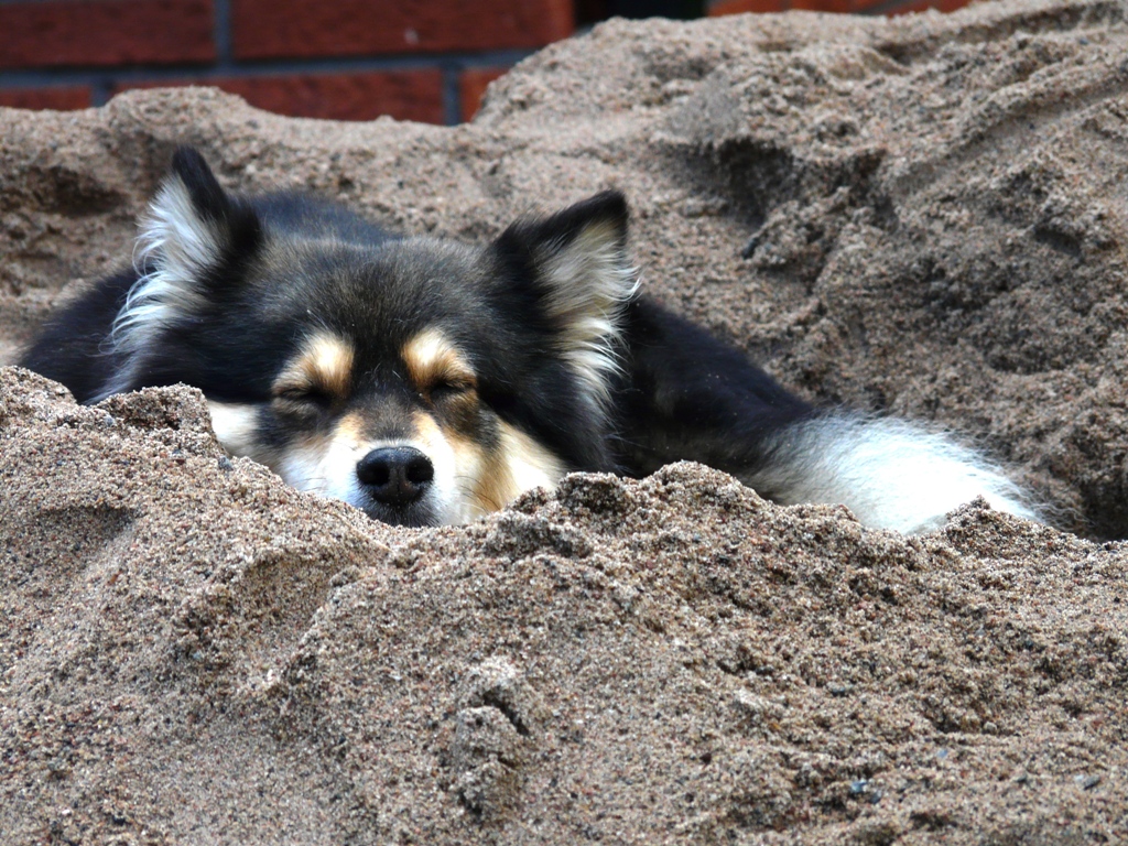 Vähän aikaa kesti (Pepin jälkeen) ennenkuin uskalsimme pitää Nelliä pihassa vapaana, Peppi kun lähti niin herkästi ohikulkevien kauriiden perään. Pari kertaa on Nelliäkin jouduttu etsimään, mutta nyt olemme jo molemmin puolin oppineet varomaan ettei pitkästymistä pääse tapahtumaan. Nellillä on pihassa selvät mielipaikat ja varsinkin viileimmillä ilmoilla pihan hiekkakasan päällä makaava koira on mukava näky. |